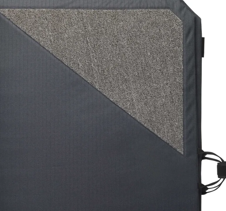 It has multiple handles on the edges for easy transport between problems, and a large footprint to smooth out landing zones. The Gap Stopper also has an added carpet swatch in the corner for cleaning off shoes before stepping on the rock.