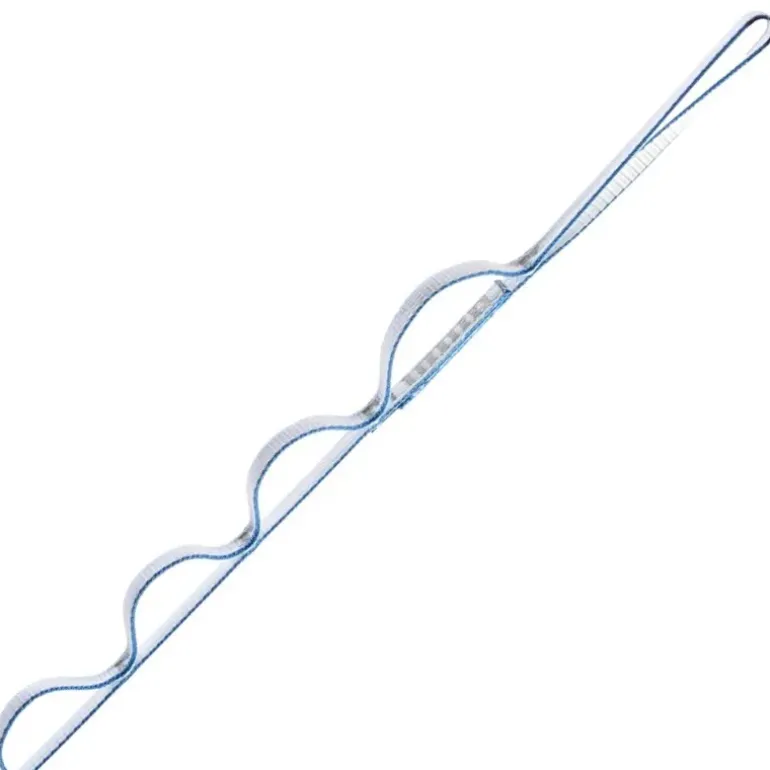 A 135cm dynatec daisy chain for aid climbing progression. Full strength end to end, while the pockets are designed to hold body weight only, and should not be used to anchor directly to the belay.