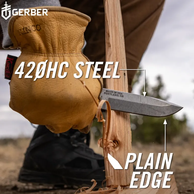 Based on Gerber’s bestselling fixed blade, the new StrongArm Camp comes with a full tang 420HC high-bevel edge blade and a diamond-textured, comfortable, grippy handle. Making it possible to make controlled cuts for first aid or cutting rope with the durability to handle more challenging tasks.
