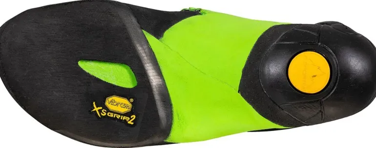 The protective, ultra sticky rubber at the toe protects against abrasion and forms a grippy surface for toe hooks. The Vibram XS-Grip2 sole provides maximum grip on any type of wall.