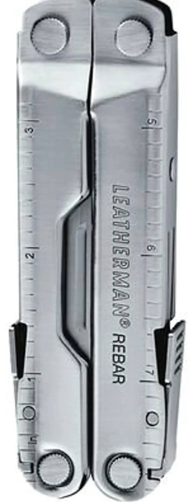 The Leatherman Rebar features all-locking tools, 100% stainless steel construction and removable wire cutters.