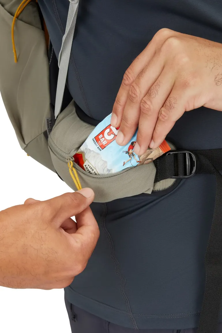 - Dual hipbelt pockets; one zipped and one mesh stash