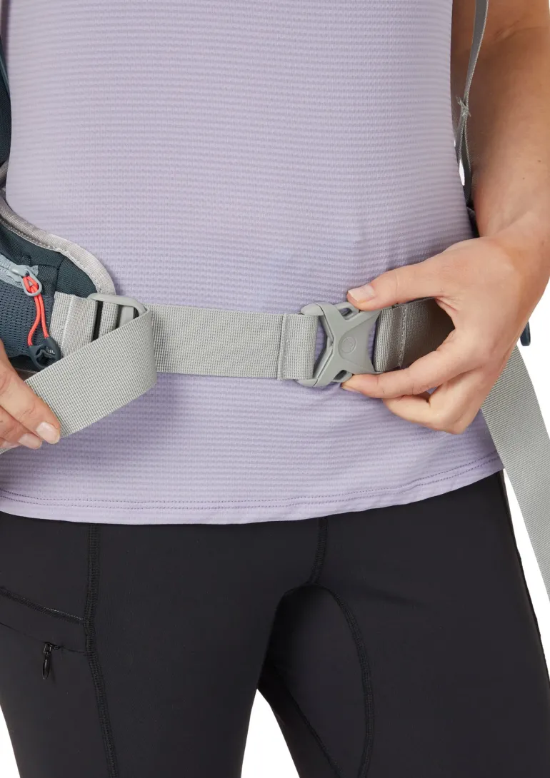The backpack features a forward pull hipbelt system so you can easily adjust the fit, and a rain cover in case you get caught out in a storm. Compatible with a 3L water bladder and flanked with stretch mesh water bottle side pockets, the pack makes it easy to stay hydrated and fuelled, with zipped hipbelt pockets ideal for stashing snacks. There’s plenty of space for your gear in the expandable side pockets, zipped lid pocket and a front stash pocket perfect for stowing an extra layer. Walking poles can be attached using the handy bungee retention system.
