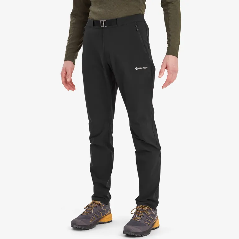 The Montane Men’s Dynamic Lite Stretch Pants are a slim fitting pant with articulated knees and have been designed with a four way stretch fabric with a zipped fly, snap press closure fastening and integrated belt; which keeps these pants in place while you’re on the move.