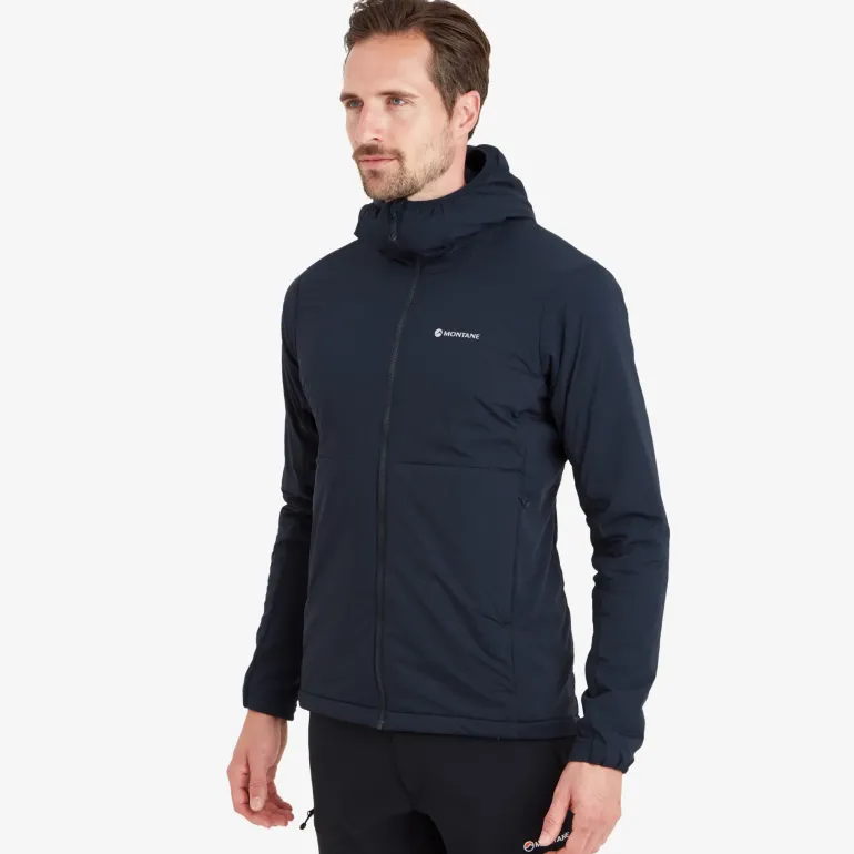 The men’s Fireball Lite Hooded Jacket provides lightweight, core body warmth for active use in the mountains.