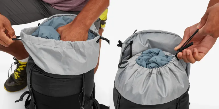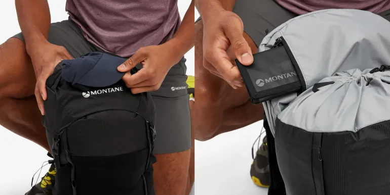 The new Montane T-Hook system allows you to reconfigure the external storage and optimise it for your current adventure. Other easy-to-access storage options include pockets with locking zips.