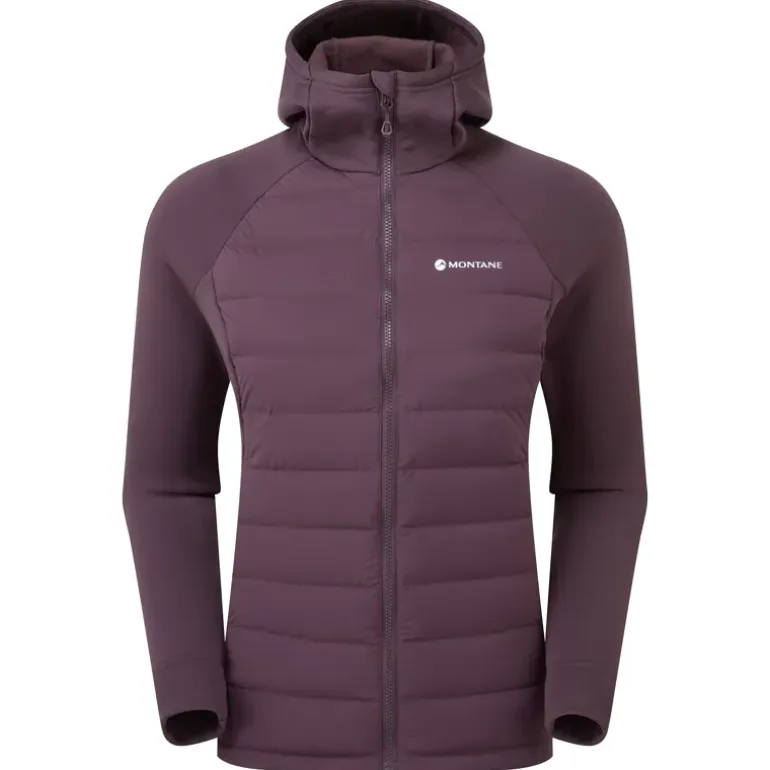 The Montane Women’s Composite Hooded Down Jacket is a protective, durable thermal layer designed for unrestricted movement in cold conditions. A durable design is delivered through use of Pertex Quantum 3D weave fabric with 2-way stretch, this offers extreme, durable protection that can withstand the harshest of elements. Combining this fabric with THERMO Stretch Fleece provides a precision fit that allows for ultimate freedom of movement. HyperDRY 750+ fill power Duck down with PFC-Free DWR greatly improves thermal performance in wetter conditions and keeps your core body warm when you need it! Built with movement in mind, the Composite down jacket will keep you warm and protected when taking on a range of fast-paced activities in the mountains, including climbing or hiking.Features