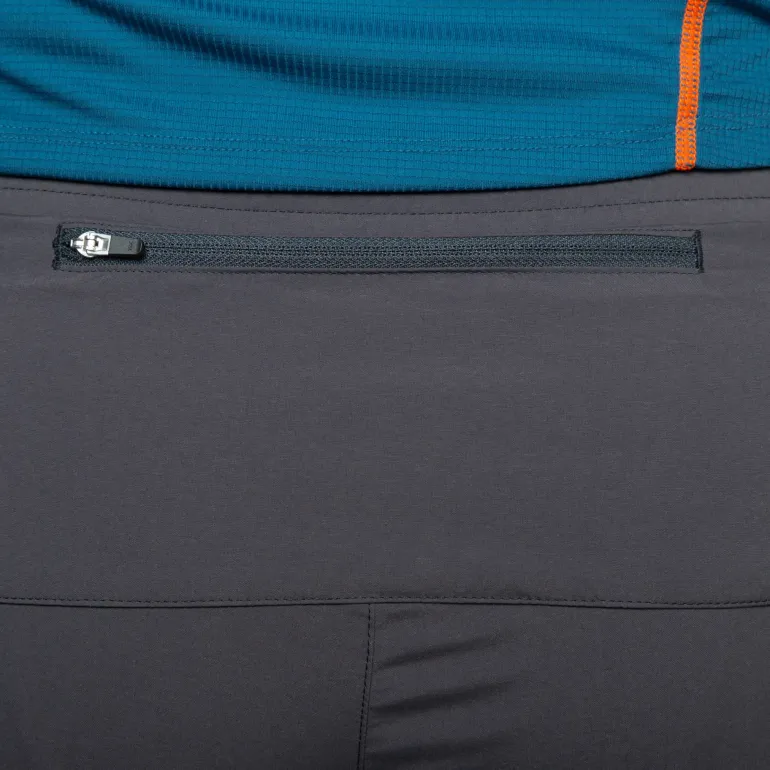 The Exolite 100 stretch woven outer offers quick-drying protection on exposed ridgelines, while the close-fitting stretch inner short ensures all-day support and comfort, wicking away moisture and reducing chafing. These two layers move seamlessly together without catching or bunching, leaving you free to focus on the path ahead. The comfortable stretch waistband with drawcord allows for easy fit adjustment, while a rear zipped pocket keeps small valuables secure during fast and light objectives.