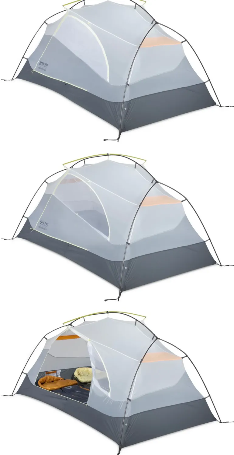 Rounding out the improved experience is NEMO’s custom Elements™ hardware suite, featuring the Axial™ corner anchor for one-handed setup and tensioning. Premium DIAPOLE™ anodized aluminium poles are pre-bent and designed for an intuitive, quick setup.