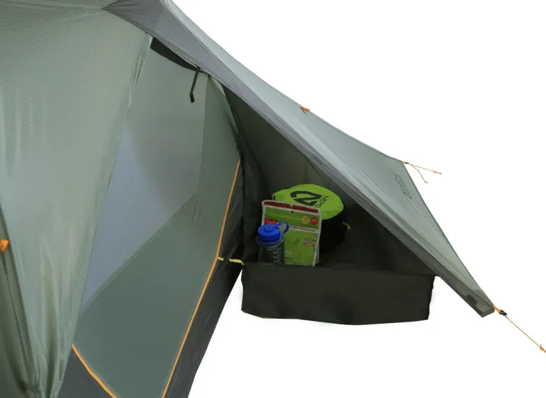 The tent itself features a tapered floor plan to save weight without sacrificing liveable space, and a tub floor design to increase privacy and weather protection. Each asymmetrical vestibule keeps gear tucked out of the way, and the Landing Zoneâ„¢ waterproof storage tub offers a protected, mud-free dumping ground. Thoughtful details include an overhead, diffusing Nightlight Pocket and integrated Gatekeeper clips, while an internal daisy chain, gear loft, and gear pockets offer plenty of storage and organisation.