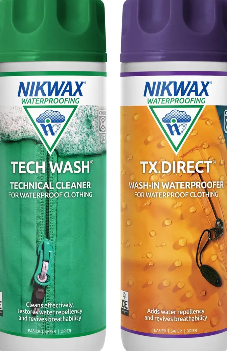 The Tech Wash® & TX.Direct® Wash-in twin pack is the complete care system for thoroughly cleaning, enhancing water repellency, and revitalising the breathability of wet weather clothing. Easy to use in your washing machine and by hand, non-flammable and PFC free.