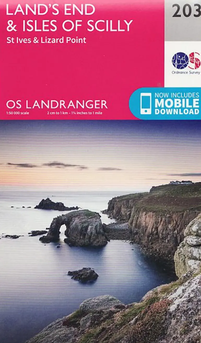OS Landranger Map 203 – Lands End and Isles of Scilly – St Ives and Lizard Point