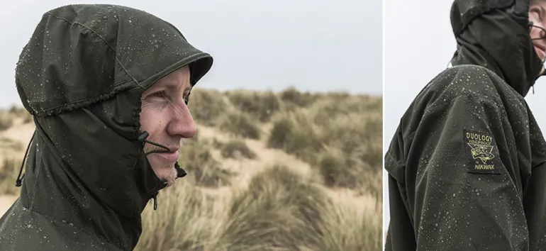 Nikwax® Windproof cuts wind chill and protects your insulation but still provides excellent moisture vapour transfer, allowing your perspiration to escape. The fabric is light but very durable and UV resistant, so providing excellent protection in all environments. The use of Analogy Pump Liner in this garment across the hood and shoulders provides excellent water shedding and weather protection.