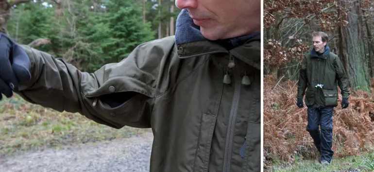 – Two zipped and fleece-lined pockets located behind the bellows pockets are perfect for handwarming.