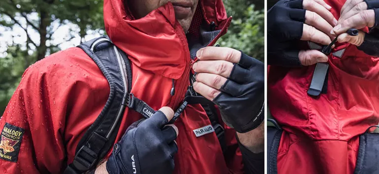 - Helmet compatible wire-peaked ‘halo’ hood provides excellent field of vision and one-handed adjustment