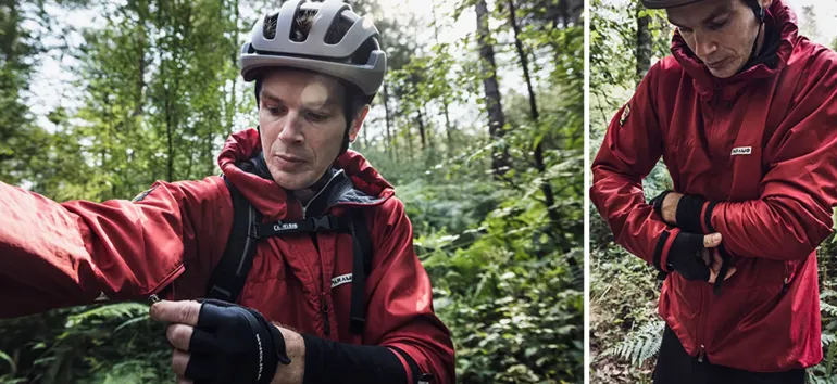 – OS map-sized chest pockets are accessed via inner zips. The right-hand pocket has a secondary zipped internal pocket for small valuables. - Forward facing, mesh-lined arm vents with locking YKK zips for quick ventilation