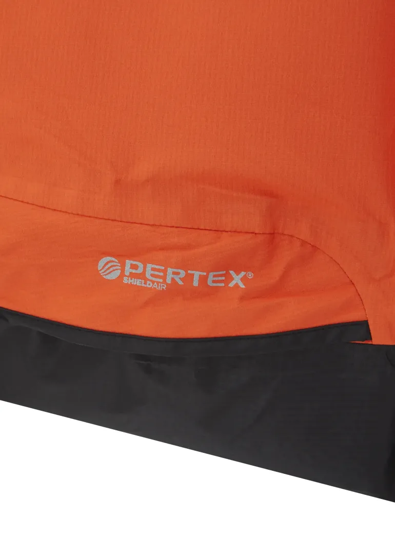 - Main – Pertex Shield Air 15D polyamide 3L ripstop with PU membrane and polyamide backer/ 90gsm/ HH: 15,000mm/ MVTR: 20,000 g/m2/24 hours/ DWR