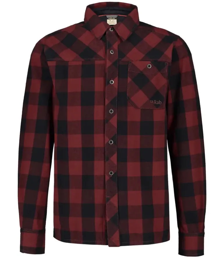 It has one chest patch pocket, buttoned cuffs, and a covered lower button to prevent catching on a harness or hip belt. The tough and durable metal buttons are inspired by the history of mountaineering and Rab’s origins in Sheffield, a once thriving steel industry.