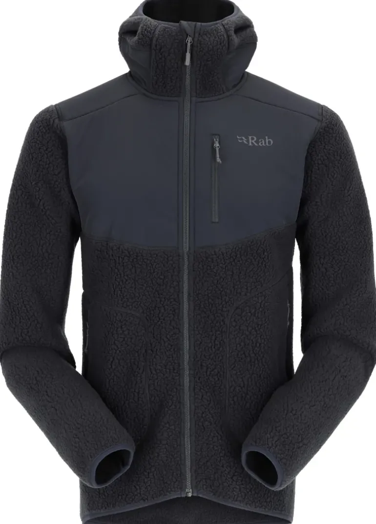 Retro vibes combined with modern performance. The Rab Men’s Outpost is ashearling style high pile fleece hoody made with Polartec® 300 for keeping warm on mountain adventures, with stretch Matrix™ woven overlays for added protection and elasticated hood for instant warmth.