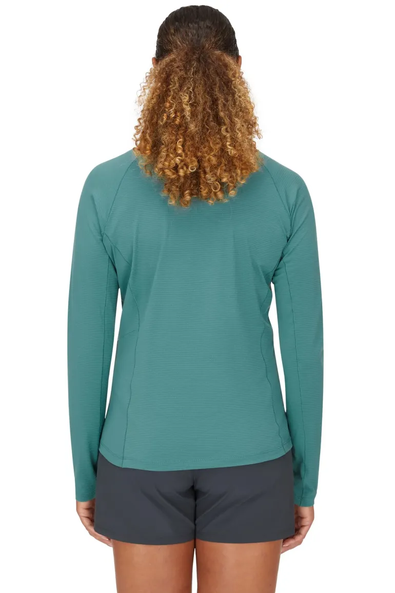 The Rab Women’s Sonic Long Sleeved Zip-T is a lightweight and fast drying technical long sleeve zip tee.