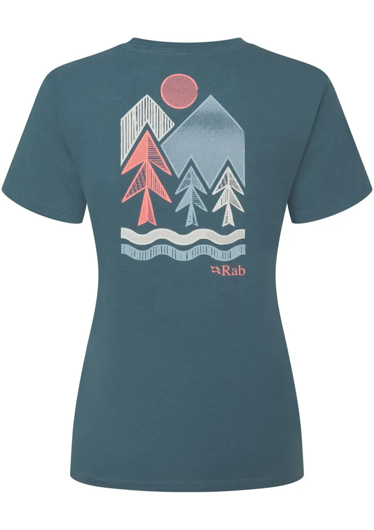 Designed with a tree and mountain print on the back, a round neck, and a casual fit.