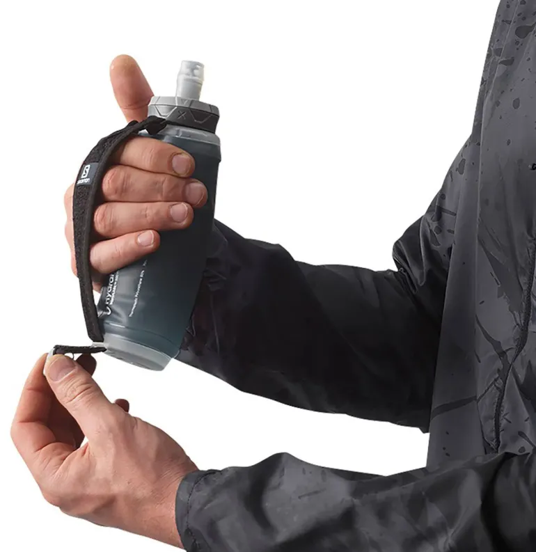 - Easy to hold – The adjustable soft strap wraps effortlessly around your hand, so you can focus your energy on running. The flask shrinks as you drink to limit water bounce.