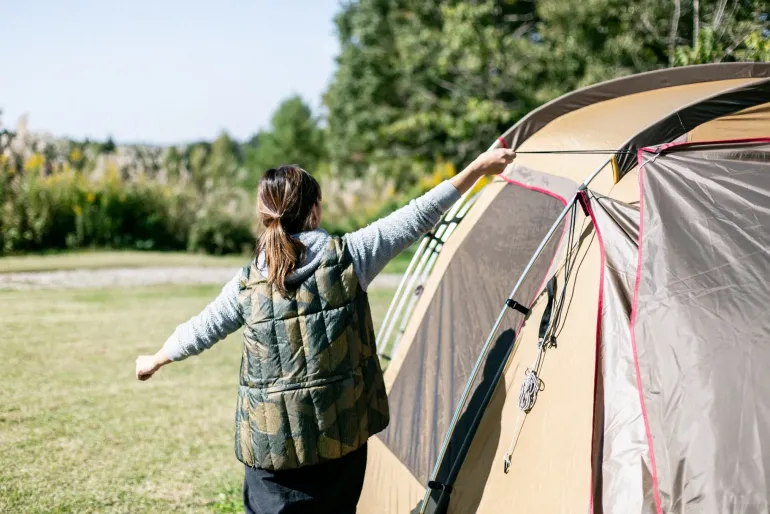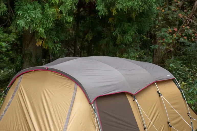 The large front and rear door can be rolled up to create a generous open space for sheltered dining and relaxing, or a open shelter with a through-flow of air on warm days. An additional side door offers quick and easy entry into the tent, especially in wet weather.