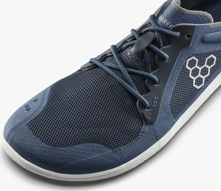 The Primus Outsole is a light and thin 2mm performance outsole that’s designed to put as little as possible between your feet and the ground. The side wall profile is as low as it can be, giving it a slightly lower profile towards the heel, and the sole subtly overlaps the toe – offering enough protection for urban environments, without compromising natural movement. Strong geometric shapes lead to strong feet, so the tread pattern uses our signature hexagonal design to help multidirectional flexibility and grip.