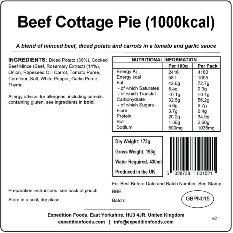 The Expedition Foods meals labelled ‘gluten-free’ contain 20 parts per million (ppm) or less of gluten and are suitable for coeliacs. They have audited procedures in place in order to minimise any risk of cross contamination. However, please note, their production facility is not a gluten-free site.