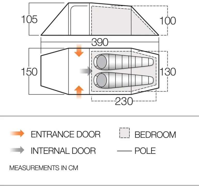 The Gothic Arch Pole Structure increases stability and assists water/snow run-off from the flysheet.