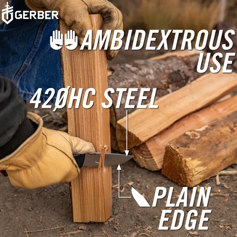 Based on Gerber’s bestselling fixed blade, the new StrongArm Camp comes with a full tang 420HC high-bevel edge blade and a diamond-textured, comfortable, grippy handle. Making it possible to make controlled cuts for first aid or cutting rope with the durability to handle more challenging tasks.