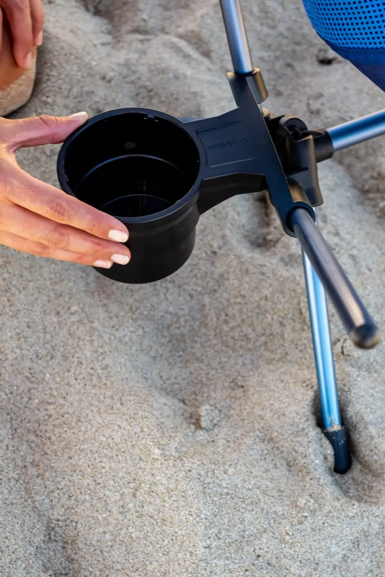 Simply attach the cup holder while assembling your chair; inserting on the front of the chair frame and securely clipping onto the back of the chair frame.