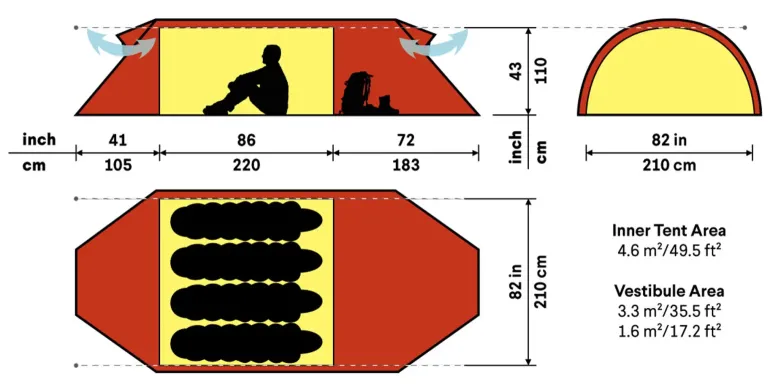 - Inner tent area: 4.6m2