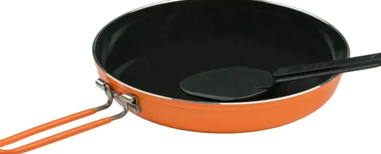 The ceramic-coated non-stick aluminium construction heats quickly and evenly, expanding the potential of backcountry cooking. Coated with PFOA-free ceramic non-stick, the skillet releases eggs, pancakes, and other foods easily, making clean up a breeze. A perfectly angled turner nests into the handle, helping you flip foods without fuss. The skillet pairs perfectly with Jetboil-regulated cooking systems and the Jetboil pot support. Skillet measures 8 by 8.5 by 1.9 inches and weighs 0.38kg.