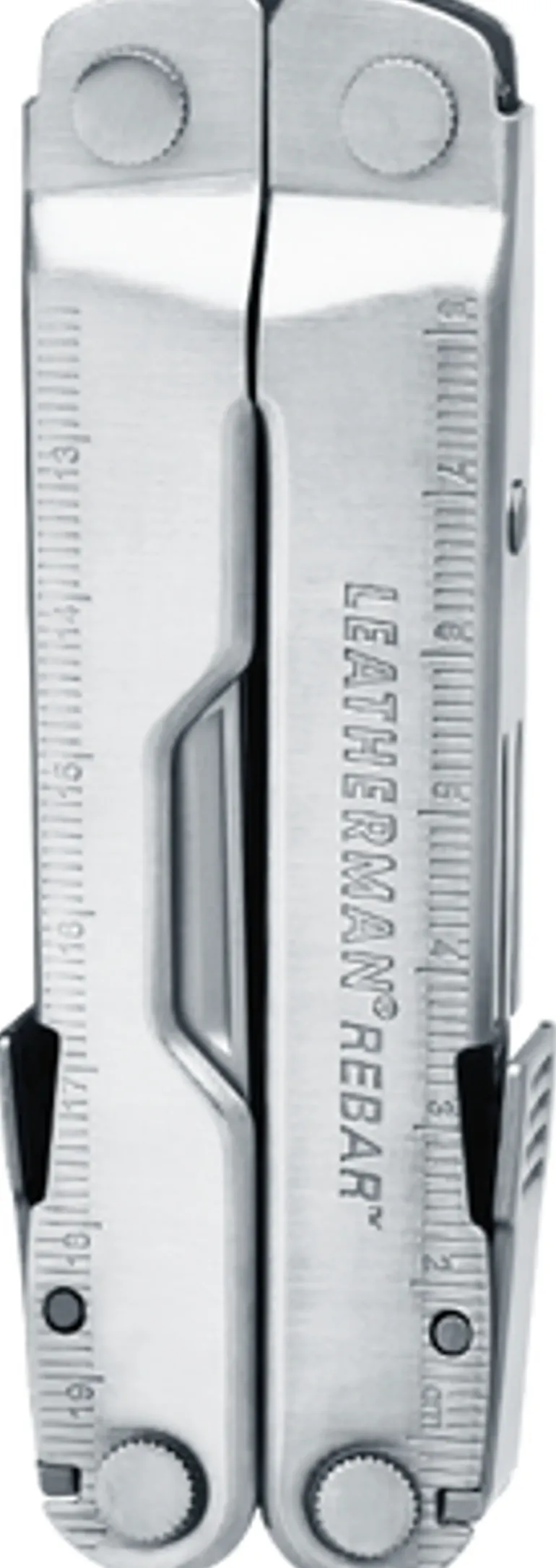 The Leatherman Rebar features all-locking tools, 100% stainless steel construction and removable wire cutters.