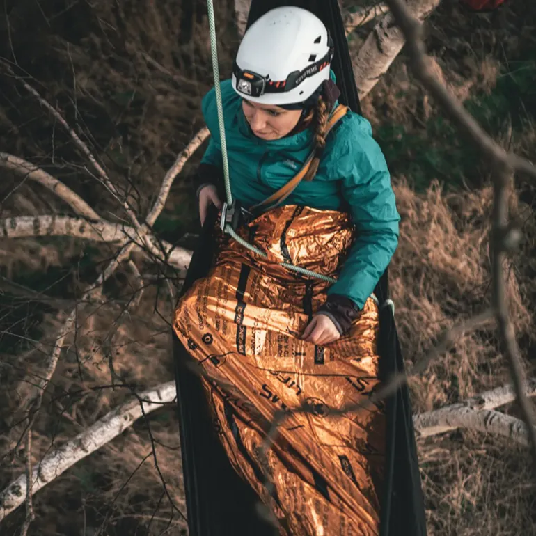 Highly visible and radar reflective for search and rescue teams, this flexible and compact, strong blanket is also made from tear-resistant material.
