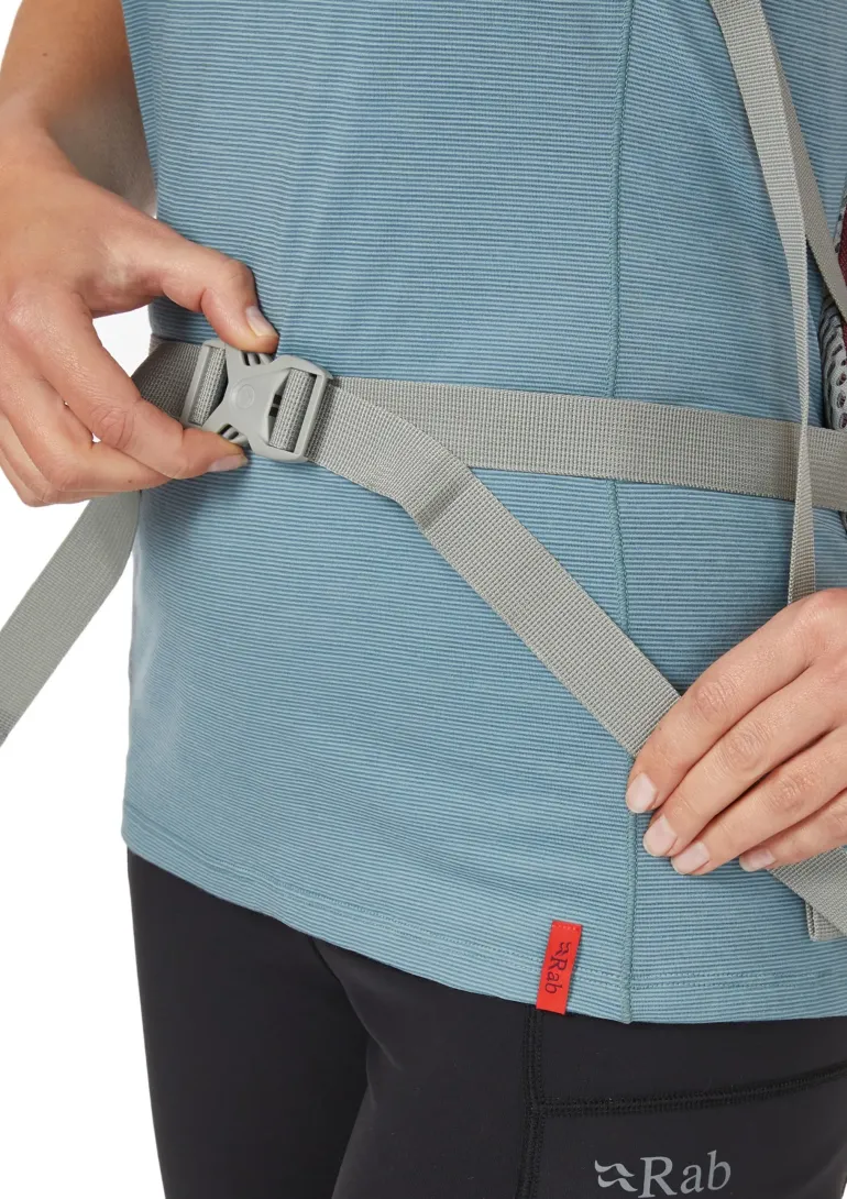 The hardwearing outer fabric is 50% recycled and finished with a fluorocarbon-free DWR, creating a durable, streamlined backpack built for miles of exploring under the summer sun.