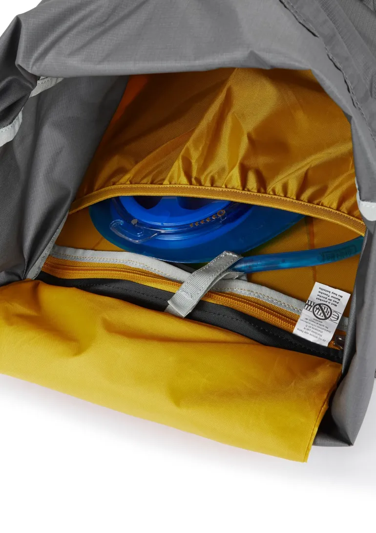 The AirZone Ultra’s details have been designed to keep weight and bulk to a minimum, from the ultralight compression straps which help to stabilise your load, to the easy-access, simplified drawcord entry. Zipped side access allows you to grab kit quick, even from the bottom of the pack. Stow wet gear or an extra layer in the large front stash pocket, with two further stretch mesh side pockets for your water bottle and other essentials you need on the move. Two handy hipbelt pockets, one zipped and the other open, are perfect for keeping snacks within easy reach, while an internal zipped pocket provides secure storage for valuables. Keep hydrated on the trail with space for a 3L water bladder, and stash away your walking poles when you don’t need them with the attachment points.