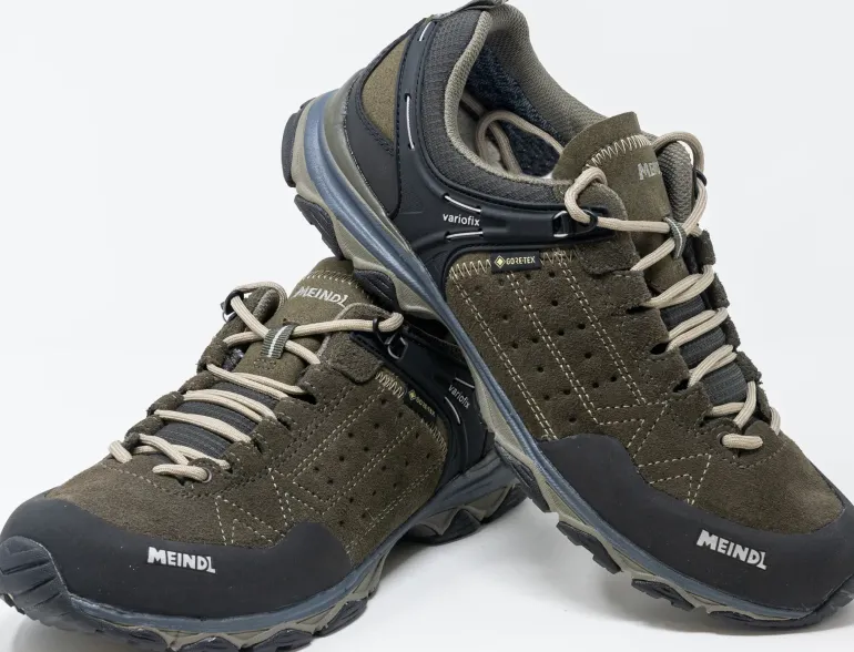Made from suede and mesh, the upper is breathable, yet resistant and is paired with a GORE-TEX lining for waterproof protection. The accompanying Air-Active footbed ensures the foot is kept dry, and the shoe is well ventilated at all times and a Meindl Magic Active sole gives the perfect amount of traction for easy to moderate terrain.