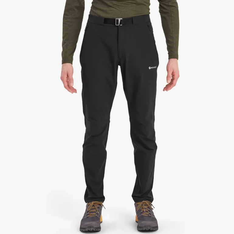 The Montane Men’s Dynamic Lite Stretch Pants are a slim fitting pant with articulated knees and have been designed with a four way stretch fabric with a zipped fly, snap press closure fastening and integrated belt; which keeps these pants in place while you’re on the move.