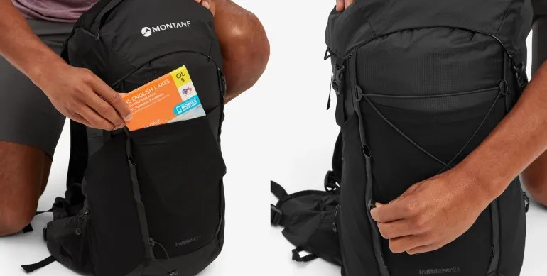 The new Montane T-Hook system allows you to reconfigure the external storage and optimise it for your current adventure. Other easy-to-access storage options include pockets with locking zips.