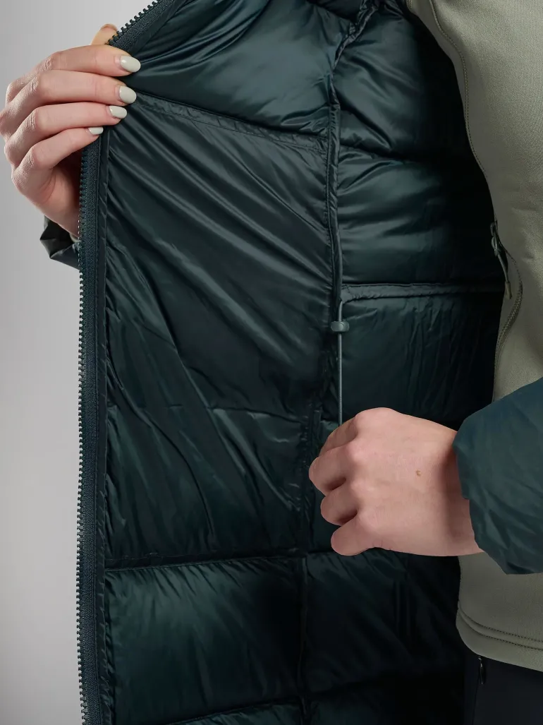 – Insulation: Filled with 110g (size UK 10) of 100% recycled water-resistant, fluorocarbon-free HyperDRY™ down at 700+ fill power