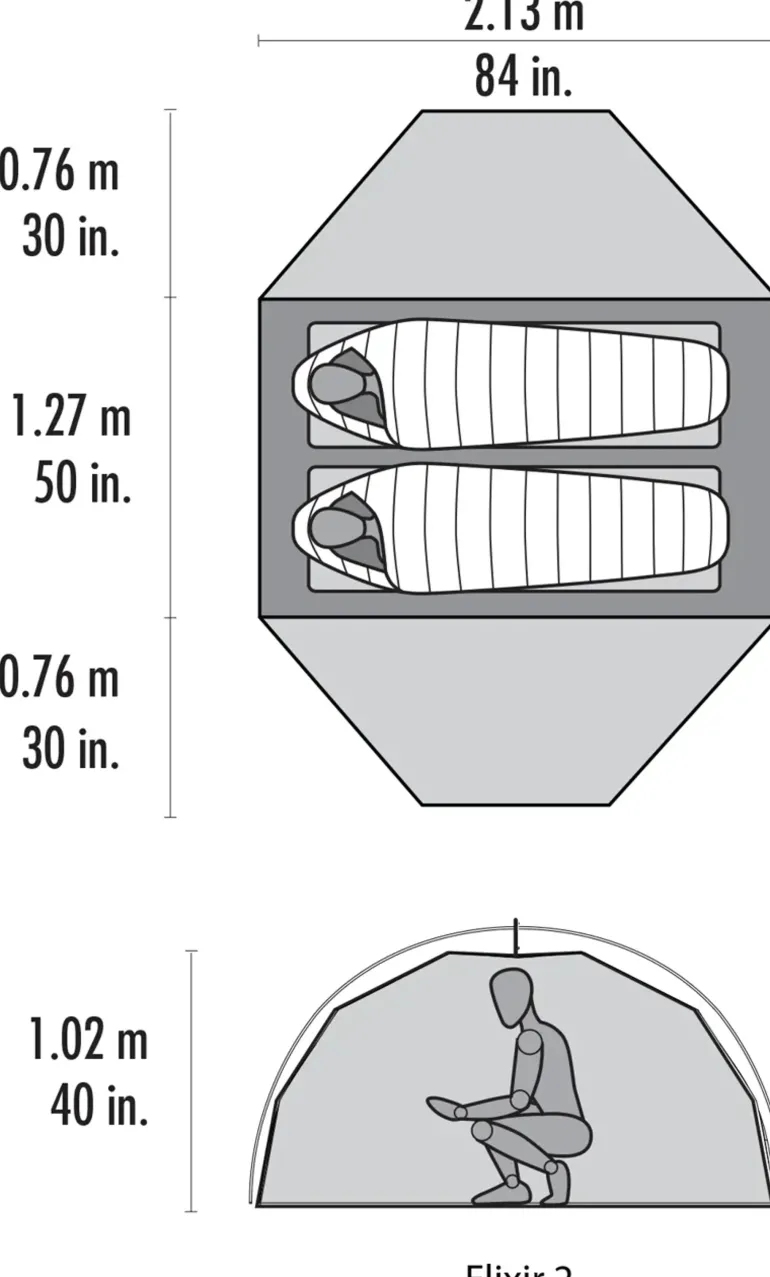 Offering true-to-size capacity for two, the Elixir 2 features two large, StayDry doors with glow in the dark zippers to make them easy to find at night, plus two generous vestibules that offer enough room for storing gear.