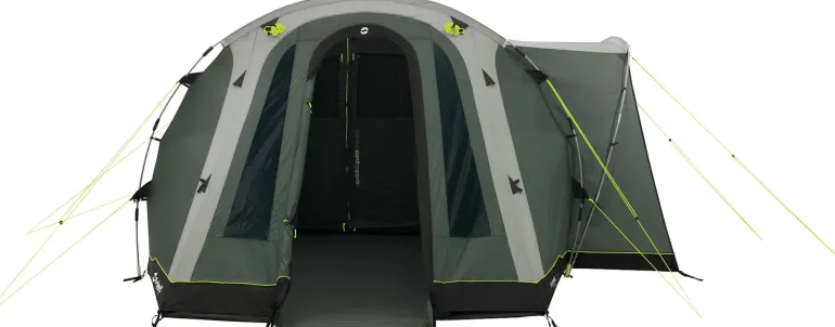 For easy access, the main door and mesh door fold and toggle neatly to one side and the groundsheet lies flush with the ground for safe, easy access. Behind the front, roll away door is a living area with a sealed-in bathtub groundsheet to help keep outdraughts, insects, dirt, and water. An additional Rain Safe side door allows you to quickly enter and exit the tent in poor weather.