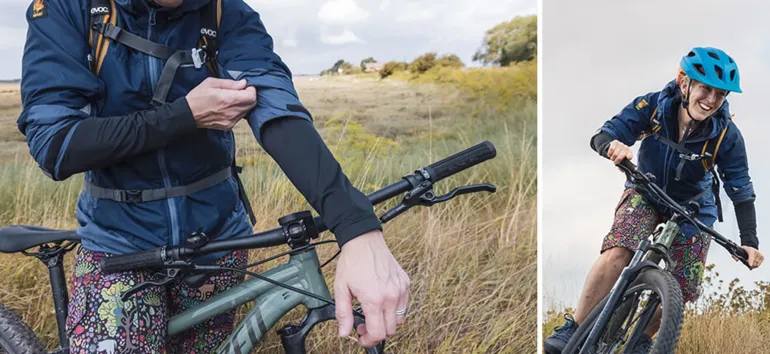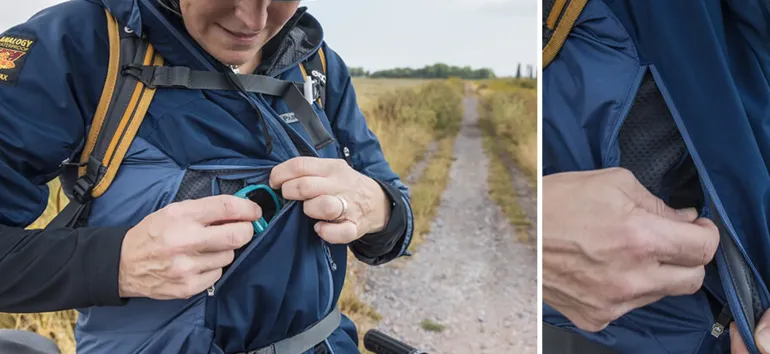 – OS map-sized chest pockets are accessed via inner zips. The right-hand pocket has a secondary zipped internal pocket for small valuables. - Forward facing, mesh-lined arm vents with locking YKK zips for quick ventilation