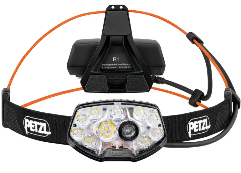 – The battery pack is in the rear to distribute the weight of the headlamp over the entire head, making it balanced and comfortable to wear