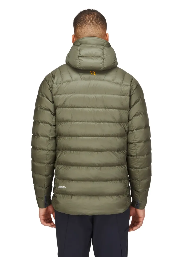 A technical down jacket that features zoned, midi and micro stitch-through baffle construction to offer the perfect blend of low weight, warmth, and protection for the Alpine climber and mountaineer.Materials
