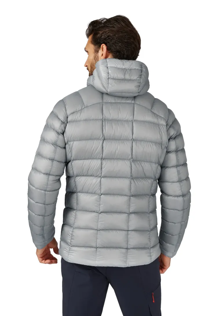 Its ultralight stitch-through construction reduces weight and bulk, while optimising breathability and freedom of movement with articulation through the sleeves. Seal out the cold on bitter summit transitions with the down-filled hood, which features a part-elasticated opening and a stiffened peak to protect you from the elements. The lightweight rear hem adjustment and part-elasticated cuffs ensure a close fit in bone-chilling winds, while two zipped pockets provide warmth for numb hands.