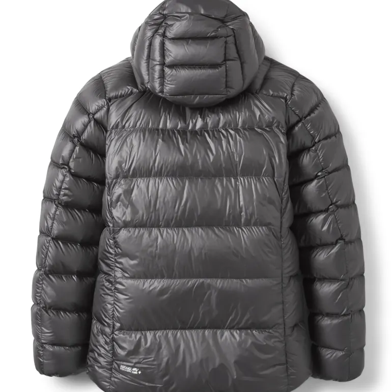 - Helmet compatible down-filled hood with rear elastication, concealed internal adjustment and stiffened peak for increased protection