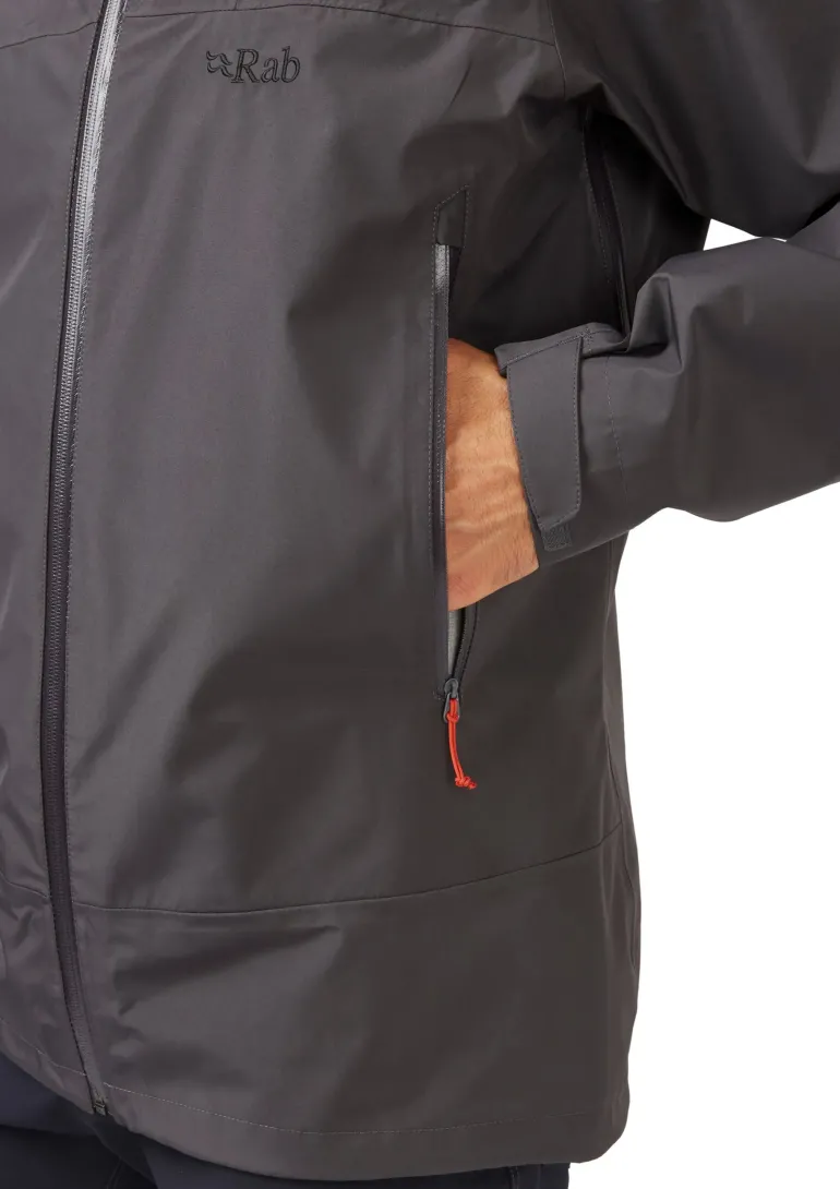 The Rab Men’s Namche GTX is an everyday adventure, 3-layer GORE-TEX waterproof shell with lower impact construction. Ideal for hiking and hillwalking, it’s built with 100% recycled, fluorocarbon-free fabric, a fluorocarbon-free membrane, and a low energy use solution-dyed backer.